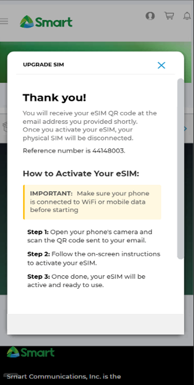 That’s it! You’ve successfully upgraded your Smart Prepaid /TNT physical SIM to eSIM using MySmart.