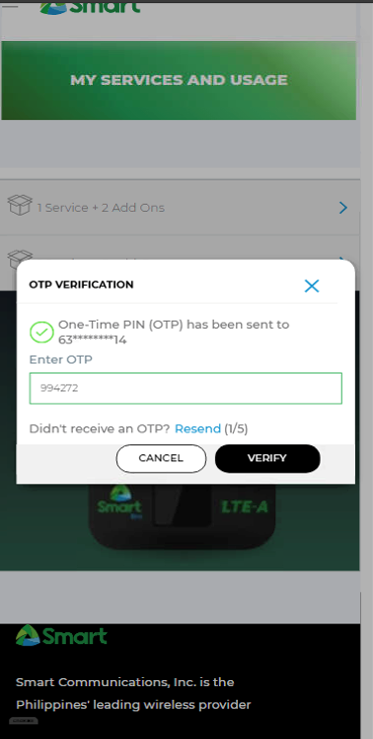 6. Enter the OTP that will be sent to your email and tap Verify.
