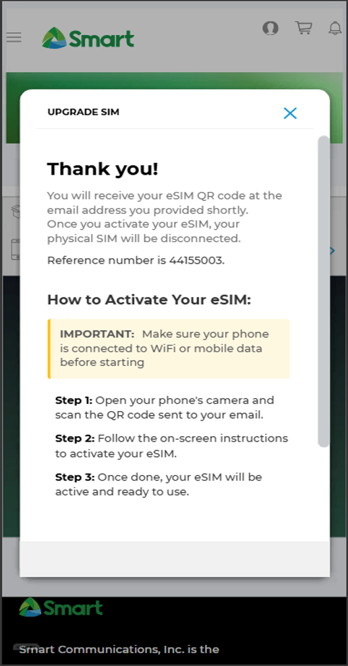 That’s it! You’ve successfully upgraded your Smart Prepaid /TNT physical SIM to eSIM using MySmart.