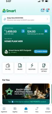 Smart Home WiFi Postpaid subscribers can easily view or download their billing statements using the Smart App. You can check your current bill, billing history, and payment history anytime through the app.